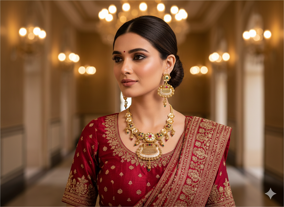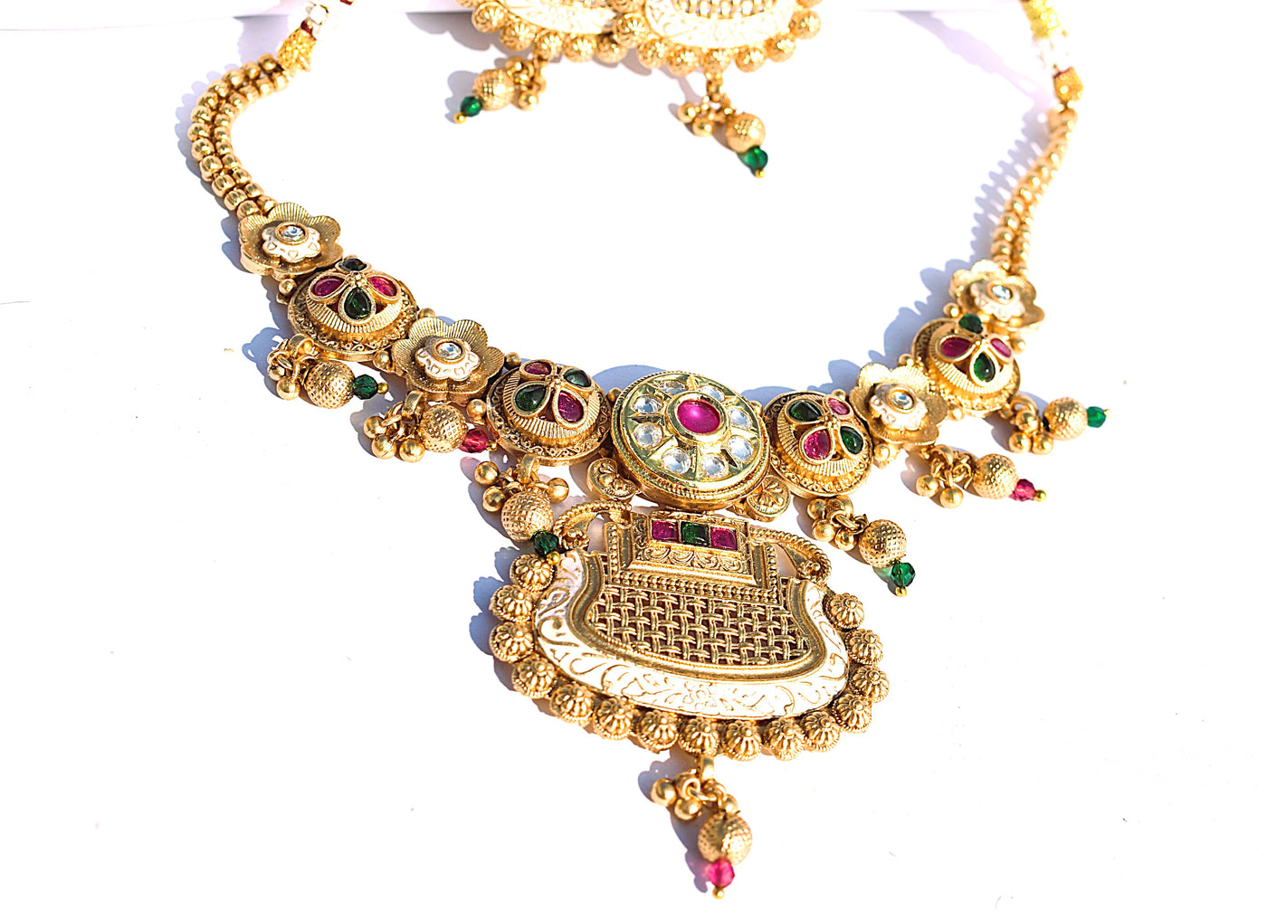 A versatile ethnic imitation jewellery piece for functions and celebrations.