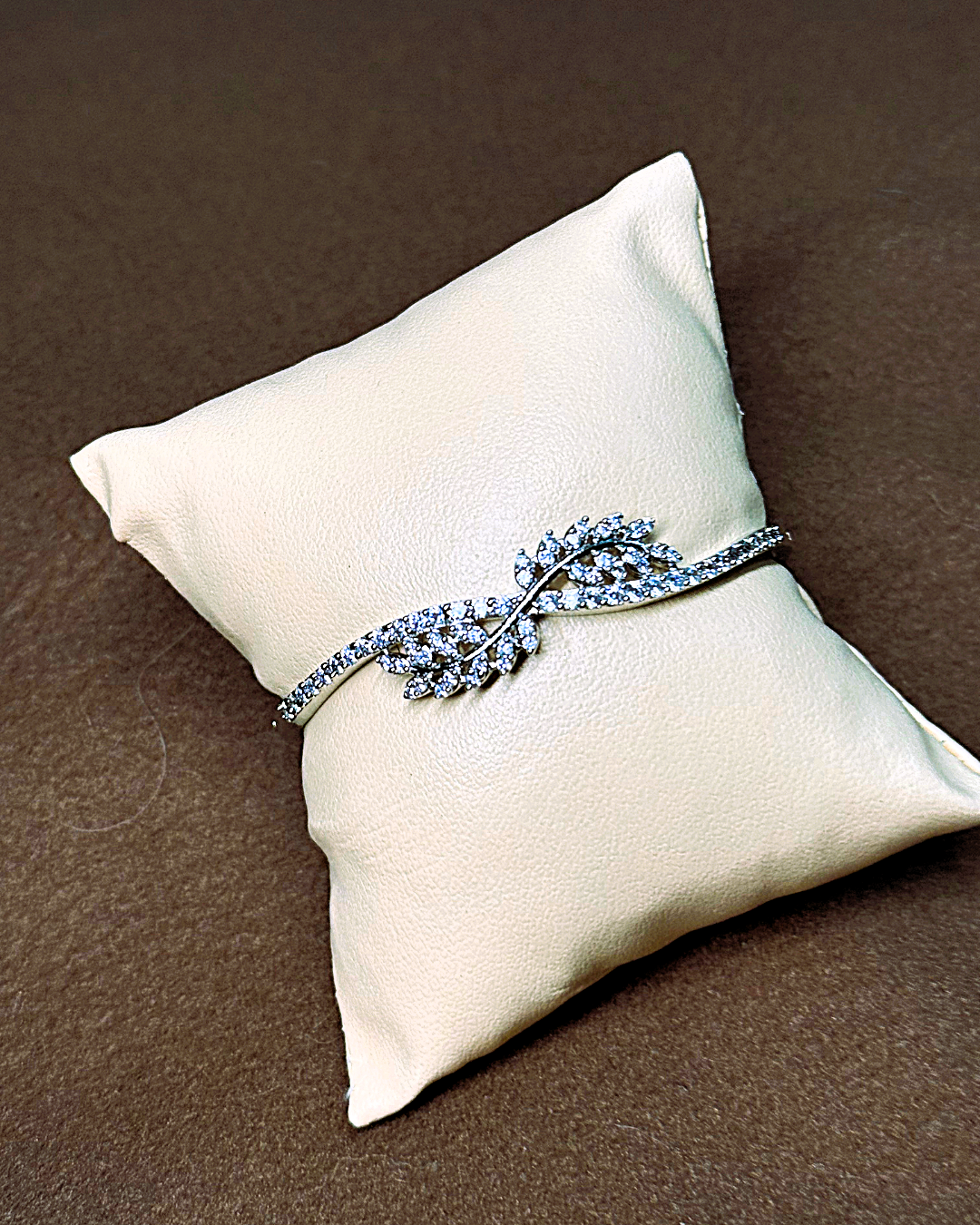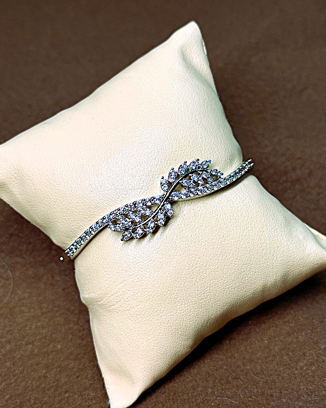 Clean lines and a modern finish define this light-weight artificial diamond bracelet.