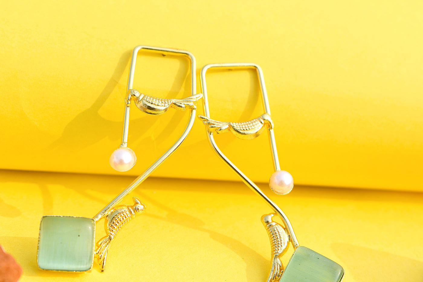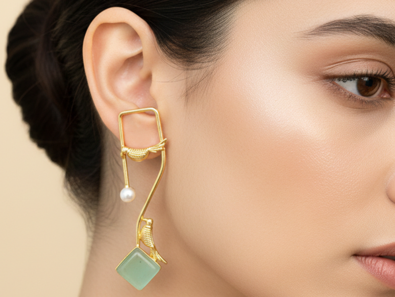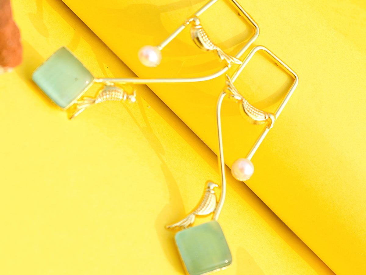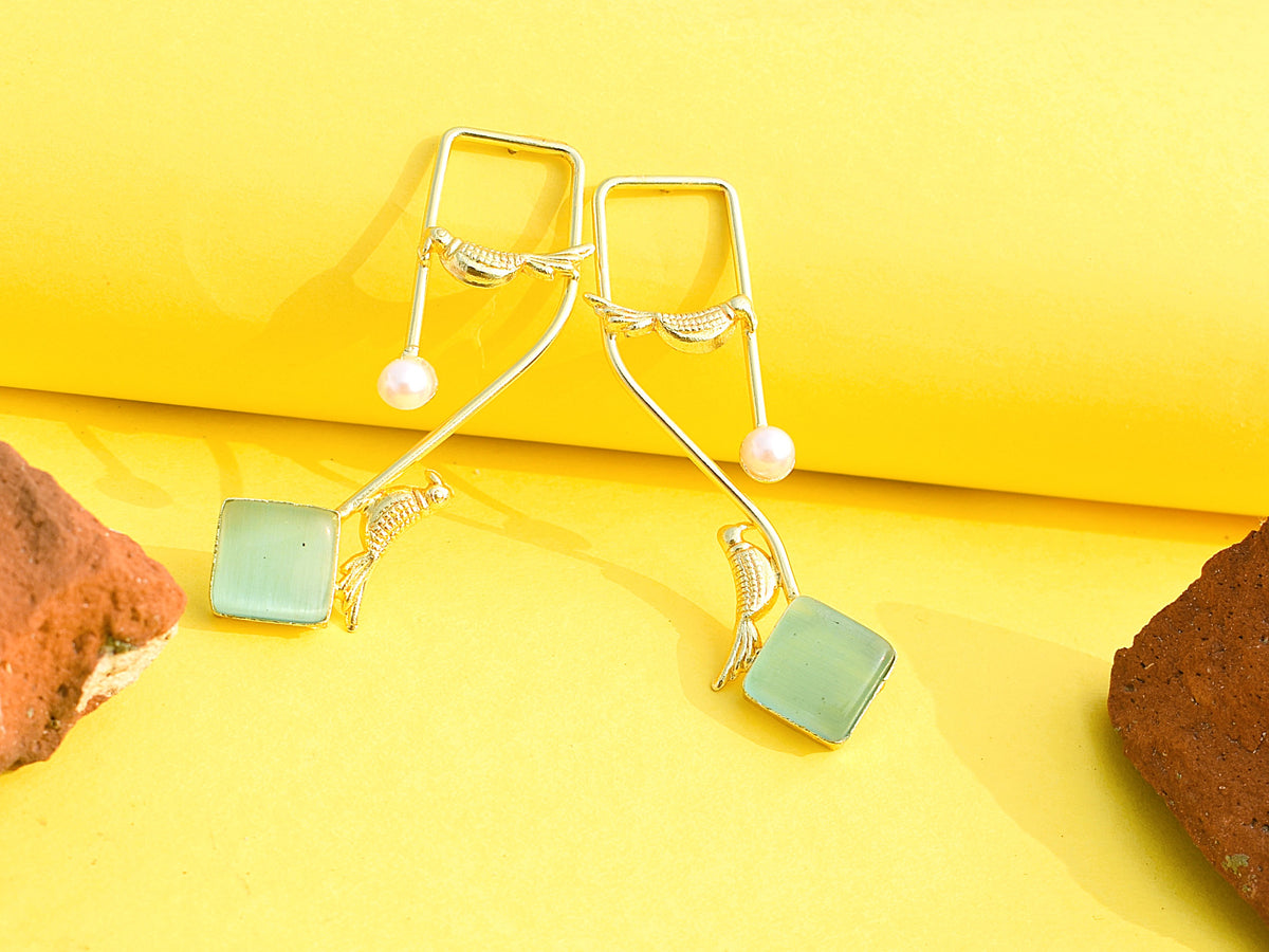 Cyan stone gold-polished dangled earrings bringing fresh colour and bold energy. Designed to pop on reels, selfies, and off-duty outfits.