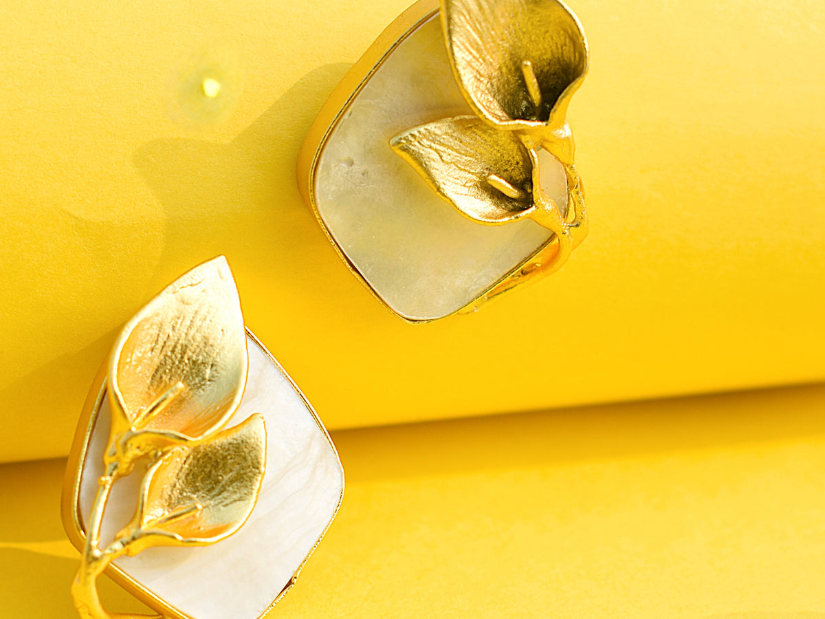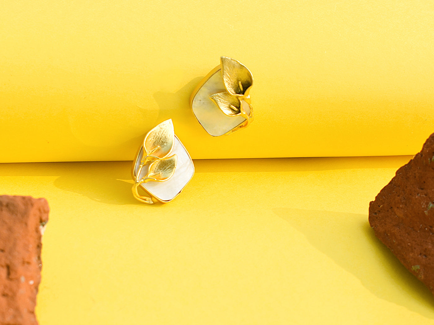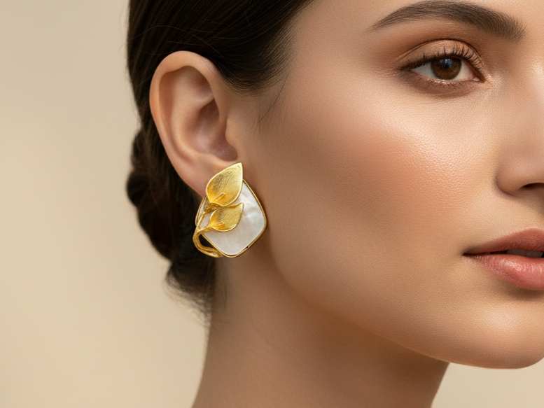 White stone gold-polished earrings with a crisp shine that hits different. Trend-forward, Insta-ready, and effortless to style from brunch looks to night outings.