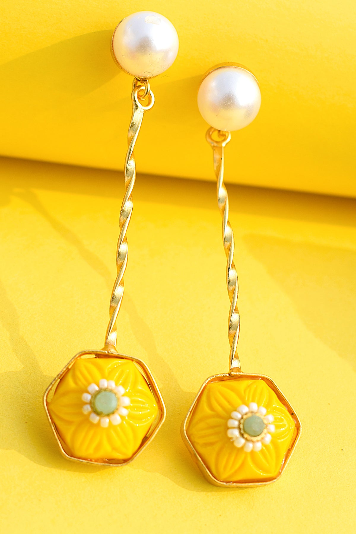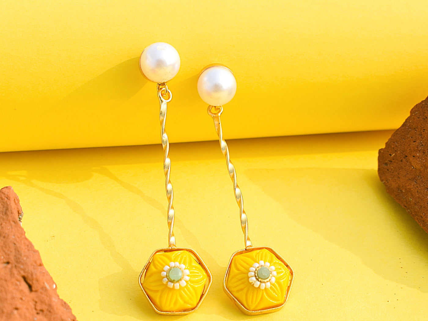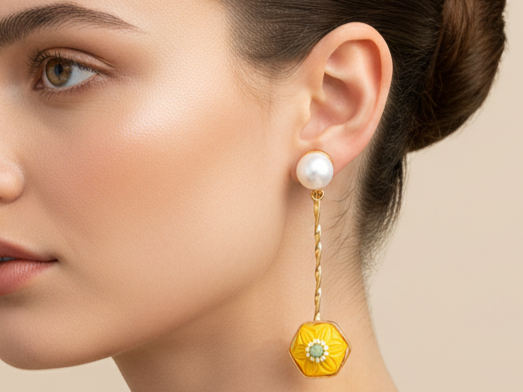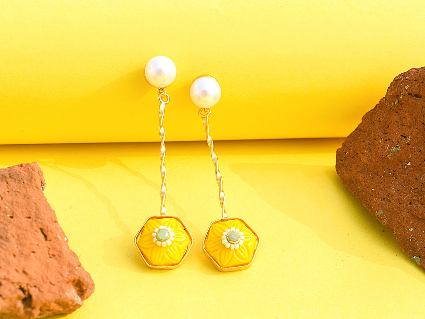 Yellow stone gold-polished earrings radiating bright, happy energy. Fun, youthful, and perfect for colour lovers who like statement sparkle.